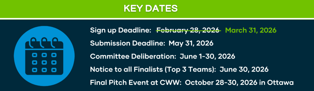 In addition to the cash prizes, all finalists will benefit from industry recognition, networking opportunities, and the chance to get their ideas in front of key industry leaders. Up to 4 members of each of the top 3 teams will receive a complimentary full conference registration and are invited to attend the entire 2026 Canadian Waterpower Week national conference and trade show, taking place on October 28-30, 2026 in Ottawa.